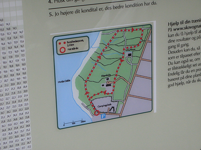 Ved indgangen til Sundhedssporet er der en stor informationstavle, hvor man kan læse om sporet, og hvor man kan blive klog på sin kondition.